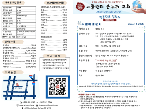 12월 29일 주보12월 29, 20241월 12일 주보1월 22, 2025 Loading... Taking too long? Reload document | Open in new tab 관련 글2월 22일 주보내용보기2월15일 주보내용보기2월 8일 주보내용보기