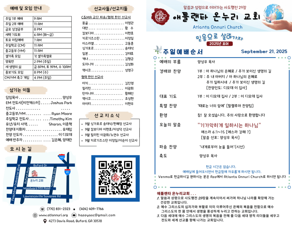 9월 21일 주보9월 26, 2025윤병국 집사10월 3, 2025 Loading... Taking too long? Reload document | Open in new tab 관련 글9월 26, 20259월 21일 주보내용보기9월 17, 20259월 14일 주보내용보기9월 13, 20259월 7일 주보내용보기