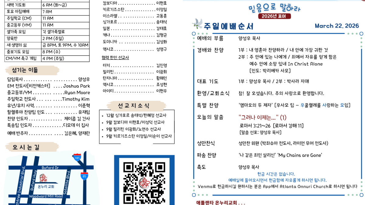 3월 15일 주보3월 22, 2026 Loading... Taking too long? Reload document | Open in new tab 관련 글3월 15일 주보내용보기3월 8일 주보내용보기3월 1일 주보내용보기